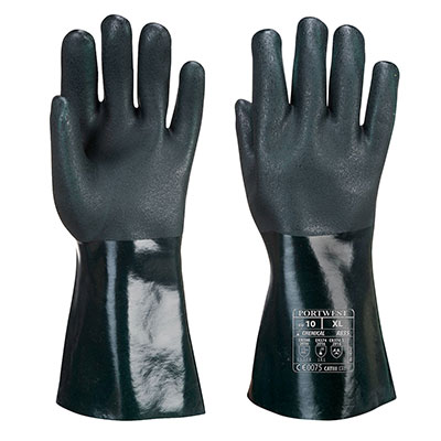 Рукавички A835, нековзкі рукавички з подвійним ПВХ покриттям.