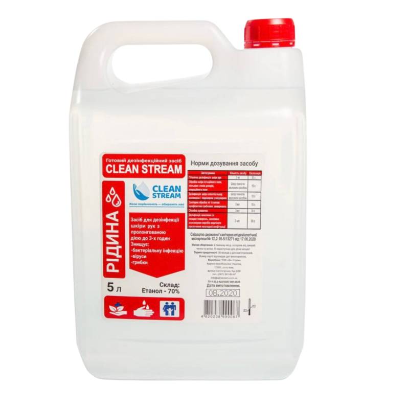 Антисептичний засіб для рук у вигляді рідини Клін Стрім, має протимікробні властивості щодо грамнегативних та грампозитивних бактерій, включаючи збудників внутрішньолікарняних інфекцій (S. aureus, P. aeruginosa, E. coli, E. hirae, E. faecium) та збудників туберкульозу; віруліцидні, включаючи збудників гепатитів В і С, ВІЛ, герпесу, коронавірусів, вакцинія-, адено-, папова-, рота-, норовірусів, збудників грипу: A(H5N1) «пташиний грип», A(H1N1)…